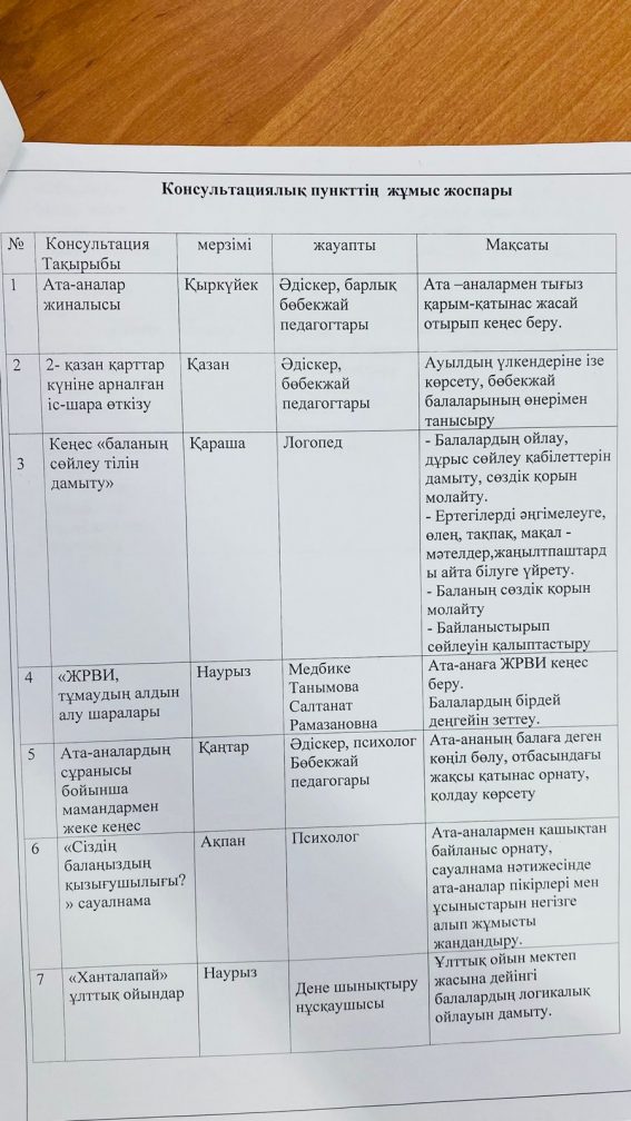 Ата-аналарға арналған консультативтік пунктің 2025-2026 оқу жылына арналған